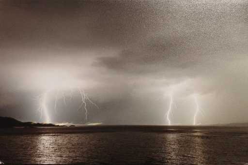 August 1990, lightning, near La Maddalena, Sardinia, Italy.