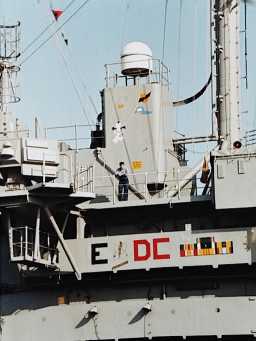 August 1991, USS Truett (FF-1095). Stern of the frigate, somewhere in the Mideast. The R2-D2 looking thing, is CIWS. |