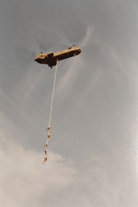 January 1990, CH46, Sea Knight. "Spy rigging" with 5 marines, over Southern France.